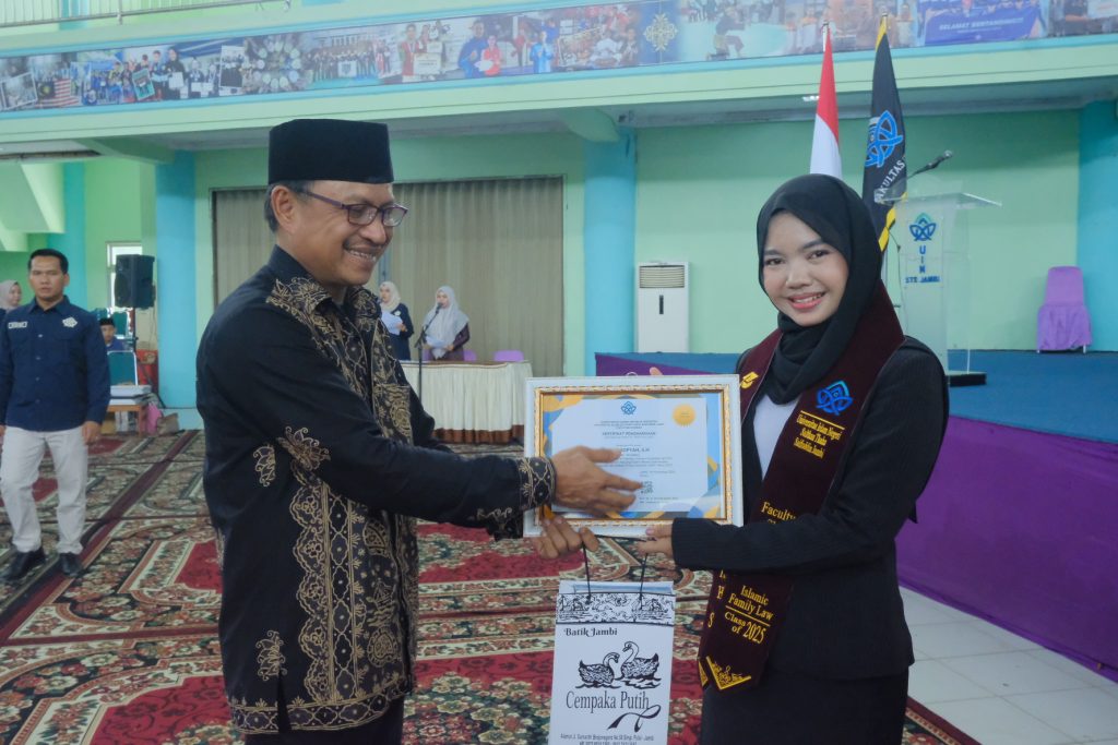 Jambi 17 November 2025 – Fakultas Syariah Universitas Islam Negeri Sulthan Thaha Saifuddin (UIN STS) Jambi menggelar Yudisium ke-XVIII yang menandai kelulusan ratusan mahasiswa dari berbagai program studi. Dalam gelaran tersebut, Program Studi Hukum Keluarga Islam (HKI) mencatatkan prestasi membanggakan dengan meluluskan 43 mahasiswa, termasuk dua di antaranya berhasil meraih predikat mahasiswa terbaik tingkat fakultas.