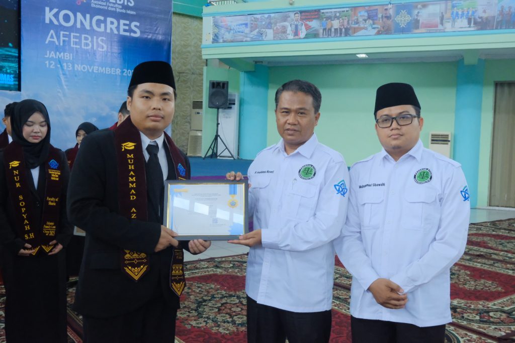 M. Azik tampil sebagai bintang paling cemerlang dengan menorehkan Indeks Prestasi Kumulatif (IPK) 3,97 dan yudisium Summa Cum Laude. Prestasi gemilang ini mengantarkannya menjadi lulusan terbaik pertama Fakultas Syariah sekaligus mahasiswa terbaik pertama Program Studi HKI. Pencapaian M. Azik menjadi bukti dedikasi dan konsistensi akademik yang luar biasa selama menempuh pendidikan di kampus yang berlokasi di ibu kota Provinsi Jambi ini.